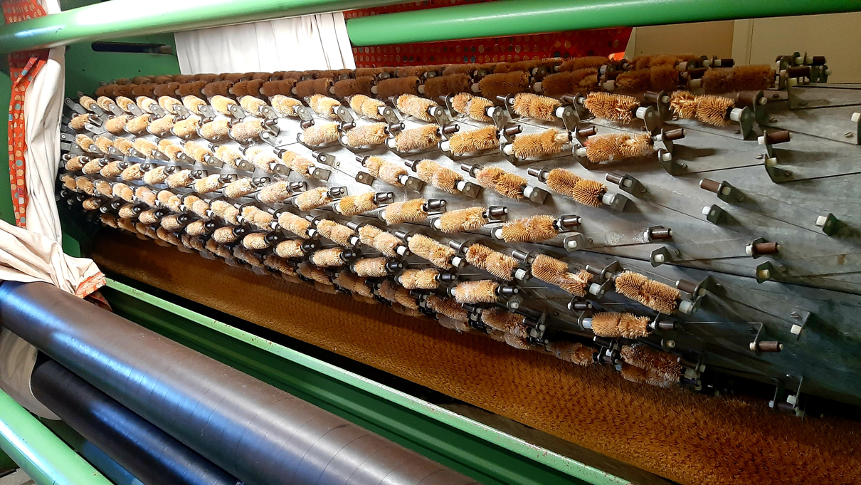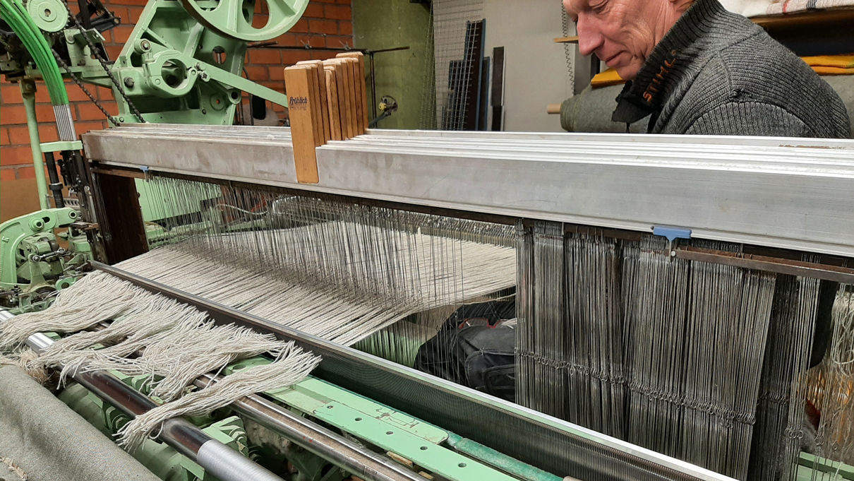 Väveriet finns i det gamla nedlagda mejeriet i Bollnäs. Där har vi 5 stycken vävstolar plus ett beredningsverk för ullplädar. Vi tillverkar hålkorten på plats, färgställning och kvalitéer tar vi fram själva. Efter vävning gör vi beredningen (ruggningen) av väven i samma lokal. När den ruggade väven har torkat klart efter två dygn i torken klipper vi upp och syr en langettsöm runt pläden.